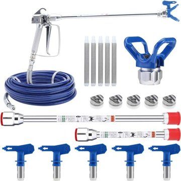 WOOLUCK® Kit de Pistolet a Peinture Airless,avec Tuyau Haute Pression 15M,Airless Peinture Pistolet Tige De Rallonge,buse pulvérisateur et 60 Mesh Éléments de Filtre