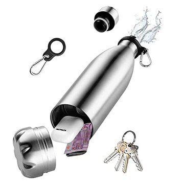 Domemit Boite Cachette Secrete, Bouteille d'eau Isotherme pour Boissons Chaudes et Froides, sans BPA, Mini Coffre Fort Gourde pour Sport, Gym, Voyage, Plage, Coffres-forts de Diversion
