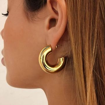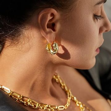 18K Gold Plated Chunky Hoop Earrings for Women Fashion Thick Gold Hoops Set Jewelry for Birthday Christmas Gifts