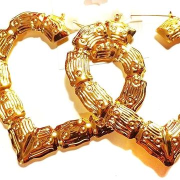 Large Bamboo Heart Hoop Earrings Gold Tone Earrings 3.5 Inch