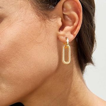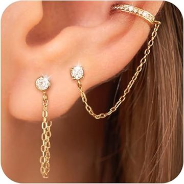 Gold Earrings for Women Trendy, Simple Dainty 14K Gold Plated Paperclip Square Chain Link Dangle Hoops Earrings Pin Stud Huggie Earrings Lightweight Hypoallergenic Minimalist Aesthetic Gold Jewelry for Women Teen Girls Christmas Gifts