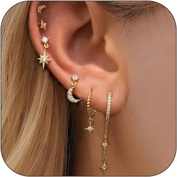 Stud Earrings for Women Dainty Gold Earrings|14k Gold Cartilage Earring Hypoallergenic|Flat Back Earring Set for Multiple Piercing Small Hoop Earrings Gift for Her