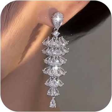 Ritach Silver Dangle Earrings for Wedding Brides Bridesmaid Bridal, Long Tassel Sparkly Cubic Zirconia Rhinestone Dangling Earrings for Women Prom Party Jewelry Gifts