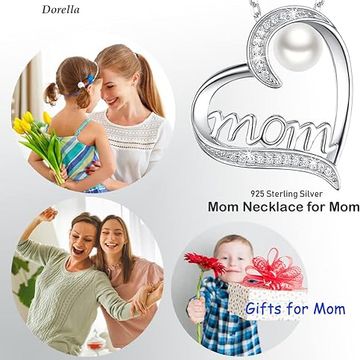 Dorella Birthday Gifts 925 Sterling Silver with June July Birthstones Pearl Ruby Necklace for Women Love Heart Pendant Jewelry Wife