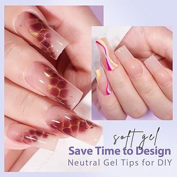 BTArtbox Long Square Gel Nail Tips - Pre Colored Soft Gel Nail Tips