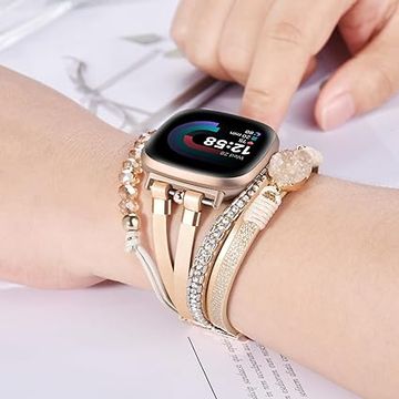 VISOOM Beaded Boho Bracelet Compatible for Fitbit Versa 4/Versa 3 Bands/Fitbit Sense2 /Sense Women Leather Fashion Cute Handmade Multilayer Wrap Watch Strap for Fitbit Versa 4/Versa 3/Sense 2/Sense Visit the VISOOM Store