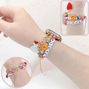 Compatible with Apple Watch Bracelet Band 44mm 45mm 49mm 42mm 38mm 40mm 41mm,Preppy Beaded Cute Metal Chain Charms Replacement Strap with Unique Pendants for iWatch Series 9 8 7 6 5 4 3 2 1 SE for Kid Girl Women