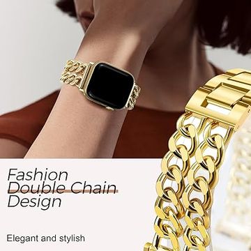 JR.DM Gold Watch Bands for Women Compatible with Apple Watch Band 38mm 40mm 41mm Adjustable Metal Band Cowboy Steel Chain Bracelet for iWatch Series 9/8/7/6/5/4/3/2/1/SE/Ultra (No Case)