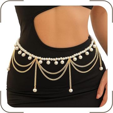Asooll Pearl Waist Chain Gold Layered Belly Chains Beach Bikini Party Waist Accessories for Women and Girls (yl-108-1)