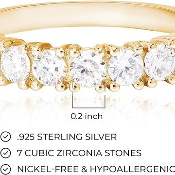 MORGAN & PAIGE Round Sterling Silver Cubic Zirconia Ring for Women, Platinum Plated Prong Set 7 Stone Ring, Stackable Round Engagement Ring, Cubic Zirconia Jewelry for Wedding, Anniversary, Birthday