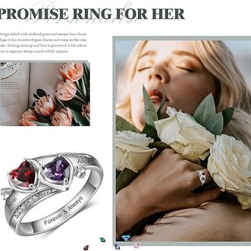 Personalized Simulated Birthstones Promise Rings for Her Engraved Names Engagement Rings Bridesmaid Gifts