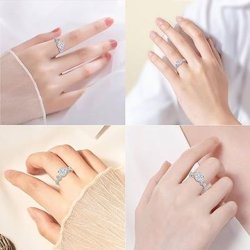 Engagement Rings for Women 1.5ct Lab Created Diamond Moissanite Rings for Woman D Color VVS1 Clarity 18K White Gold Plated 925 Sterling Silver Anniversary Ring for Her Wedding Bands for Couples