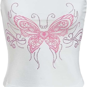SOLY HUX Women's Rhinestone Cute Print Y2K Crop Tops Sleeveless Strapless Summer Bandeau Tube Top https://amzn.to/3Xjfq6U