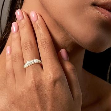 PAVOI 14K Gold Plated Cubic Zirconia Crossover Ring for Women | Simulated Diamond Open Twist Eternity Stacking Bands | CZ Statement Engagement Rings