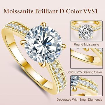 Round Moissanite Engagement Rings for Women, Women's 925 Sterling Silver Engagement Ring Moissanite Promise Rings for Her,Wedding Bands Moissanite Rings 1.5/2/3/4/5CT.