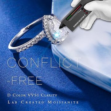 MOOSEA 1.5CT Halo Pear Moissanite Rings for Women, D Color VVS1 Clarity Lab Created Diamond Rings 18K White Gold Vermeil Moissanite Side Stone Engagement Rings for Women Wife Girlfriend Gifts