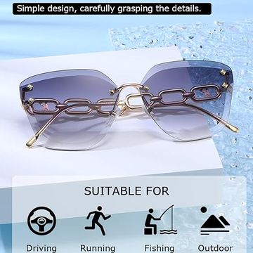 AEVOGUE Sunglasses For Women Oversized Rimless Diamond Cutting Lens Sun Glasses AE0534