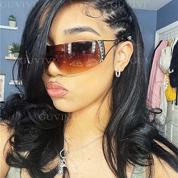 Wrap Around Y2K Sunglasses for Women Men Fashion Large Frame One-piece Shades Trendy Shield Design Gradient Lens