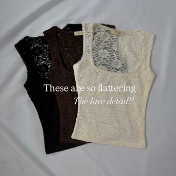 Womens Lace Trim Square Neck Sleeveless Tank