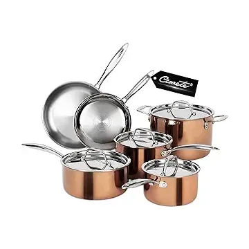 سيوايت طقم اواني ومقالي نحاسية مكون من 10 قطع، طقم اواني ومقلاة من الستانلس ستيل 18/10 مع غطاء من الستانلس ستيل، اكثر تغذية، يتضمن وعاء مرق ومقلاة ومقلاة