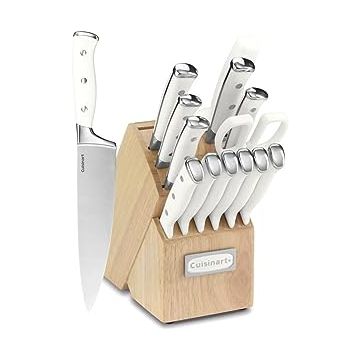 كويزنارت طقم سكاكين مكون من 15 قطعة مع مكعب، ستانلس ستيل عالي الكربون، برشام ثلاثي مطروق، ابيض، C77WTR-15P