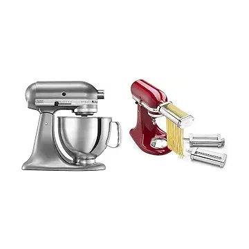 كيتشين ايد خلاط راس قابل للامالة سعة 5 كوارت مع درع صب KSM150PS من ارتيسان سيريز KSM150PS، ملحق خلاط ستاند كوانتور فضي وكيه اس ام بي ار ايه، بكرة وقطاعة، مجموعة من 3 قطع، ستانلس ستيل