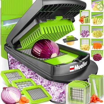 مولر برو سيريس، 10 في 1، 8 شفرات، قطاعة خضروات، مفرمة بصلة، قطاعة، قطاعة بيض مع إناء