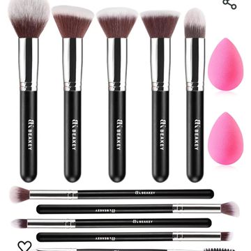BEAKEY Pinceaux Maquillages Professionnel, Pinceau Maquillage Pour Fond de Teint Blush L'anti-cernes Fard à Paupières Poudre Libre, Avec Blender Eponge(10+2pcs, Noir/Argent)