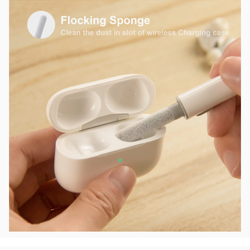 Cleaner Kit for Airpods Pro 1 2 3 Multi-Function Cleaning Pen with Soft Brush Flocking Sponge for Bluetooth Earphones Case Cleaning Tools White