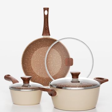Innerwell Pots and Pans Set Nonstick, 6 Piece Kitchen Nonstick Cookware Sets with Bakelite Handles