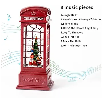 Christmas Telephone Booth Snow Globe Lantern Lighted Box Night Light Battery Or USB Operated Led Lighted Water Glittering Music Playing for Home Decoration