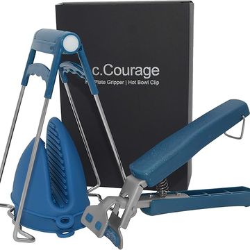 Hot Plate Gripper,Stainless Steel Bowl Clip,Kitchen Tongs Bowl Dish Pan Clip Anti-scalding 3-Pack (Navy-Blue)