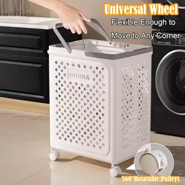 Rolling Folding Laundry Hamper,Laundry Basket with Wheels and Handles,Plastic Laundry Room Bathroom Storage Organizer,Can Be Folded to Save Space,Easy to Move