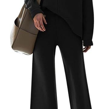 Viottiset Women's 2 Piece Outfits Casual V Neck Knit Wide Leg Sweater Lounge Set Sweatsuit