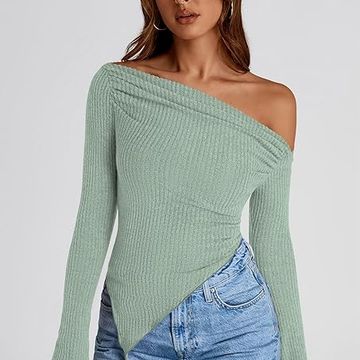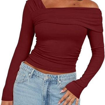 Darong Women's One Off Shoulder Long Sleeve Top Ruched Going Out Tops Slim Fit Y2K Shirt Crop Top
