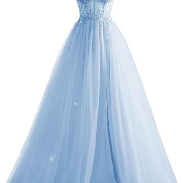 ForElise Tulle Prom Dresses for Teens 2025 Spaghetti Straps Long Ball Gown with Slit