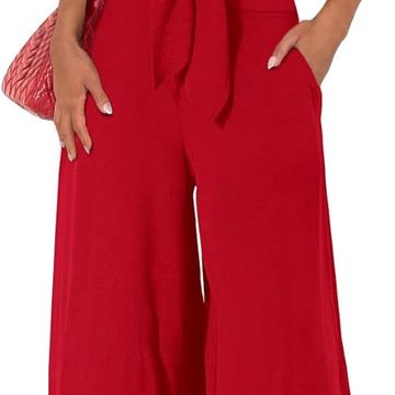 PRETTYGARDEN Women's Summer 2 Piece Outfits 2025 Cap Sleeve V Neck Belted Crop Tops Wide Leg Pant Sets Casual Tracksuit