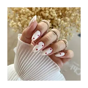 "Valentine's Day Almond Press-On Nails – 24pcs Glossy Pink Heart Fake Nails"