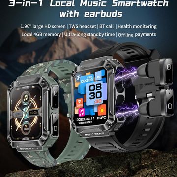 ATEVIX Smart Watch with Earbuds1.96 Full Touch Retina Display, Military Grade IP67 Waterproof Watch with Answer Calls and Send Messages-Silvery White