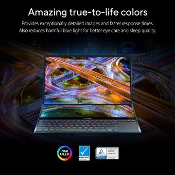ASUS ZenBook Pro Duo 15 UX582 Laptop, 15.6” OLED 4K Touch Display, i7-12700H, 16GB, 1TB, GeForce RTX 3070 Ti, ScreenPad Plus, Windows 11 Home, Celestial Blue, UX582ZW-AB76T
