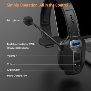 LEVN Bluetooth Headset with Microphone, Trucker Bluetooth Headset with AI Noise Cancelling & Mute Button, Wireless On-Ear Headphones 60 Hrs Working Time, for Trucker Home Office Remote Work Zoom