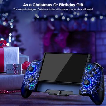 Switch Controller for Nintendo Switch/OLED, Full-Size Grip One-Piece Wireless Switch Joypad with 9 Color Lights. Ideal for Those Who Prefer Handheld Mode with APP, Turbo and Programming (JC201) THE BEST SELLER
