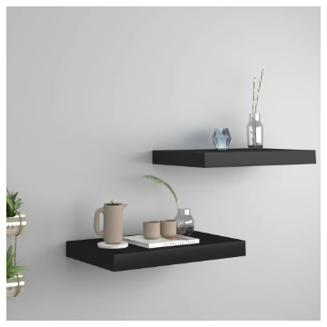 Set of 2 Black Floating Wall Shelves