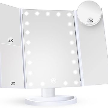 Makeup Mirror Vanity Mirror with Lights, 2X 3X 10X Magnification, Lighted Makeup Mirror, Touch Control, Trifold Makeup Mirror, Dual Power Supply, Portable LED Makeup Mirror, Women Gift (White)
