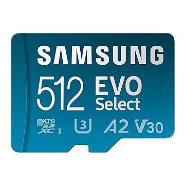 SAMSUNG EVO Select Micro SD-Memory-Card + Adapter, 512GB microSDXC 130MB/s Full HD & 4K UHD,