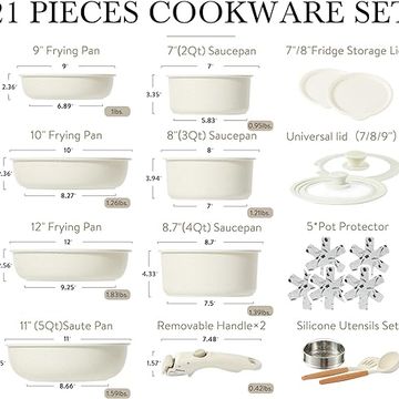 CAROTE 21pcs Pots and Pans Set, Nonstick Cookware Set Detachable Handle, Induction Kitchen Cookware Sets Non Stick with Removable Handle, RV Cookware Set, Oven Safe Cookware Set