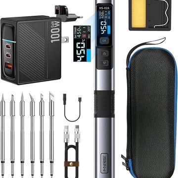 FNIRSI HS-02A 100W Portable Soldering Iron Kit, 212-842℉, Pre-set 3 Groups Temperature, 6 F245 Soldering Tips, Smart Digital Soldering Iron Pen Tool for Electronics Precision Repair