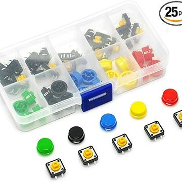 Gikfun 12x12x7.3 mm Tact Tactile Push Button Momentary SMD PCB Switch with Cap for Arduino (Pack of 25pcs) AE1027