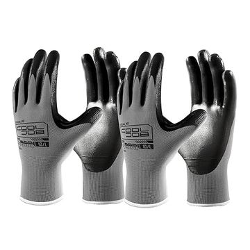 COOLJOB 10 Pairs Nitrile Dipped Safety Work Gloves with Grip, Non-slip Rubber Coated Bulk Garden Gloves for Men, Heavy-duty Oil Resistant for Truck Driver, Warehouse Box Handler, Large, Gray