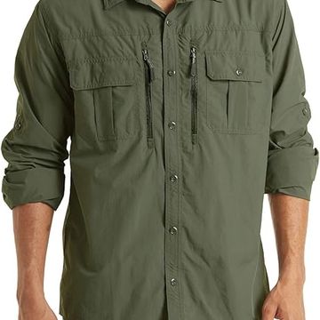TACVASEN Fishing Shirt for Men, Long Sleeve Shirt Quick Dry Fit, Tactical Shirt Button Up, Work Shirt Lightweight Safari